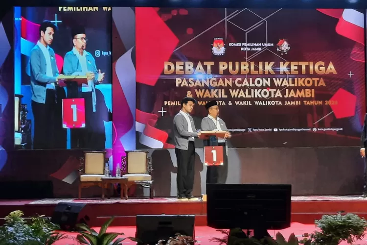 TANYAFAKTA.CO,KOTA JAMBI – Pasangan calon walikota dan calon wakil walikota Jambi nomor urut 1, Maulana-Diza mengikuti debat publik ketiga yang diselenggarakan oleh Komisi Pemilihan Umum (KPU) Kota Jambi di Ratu Convention Center (RCC) pada Rabu, (13/11/2024).