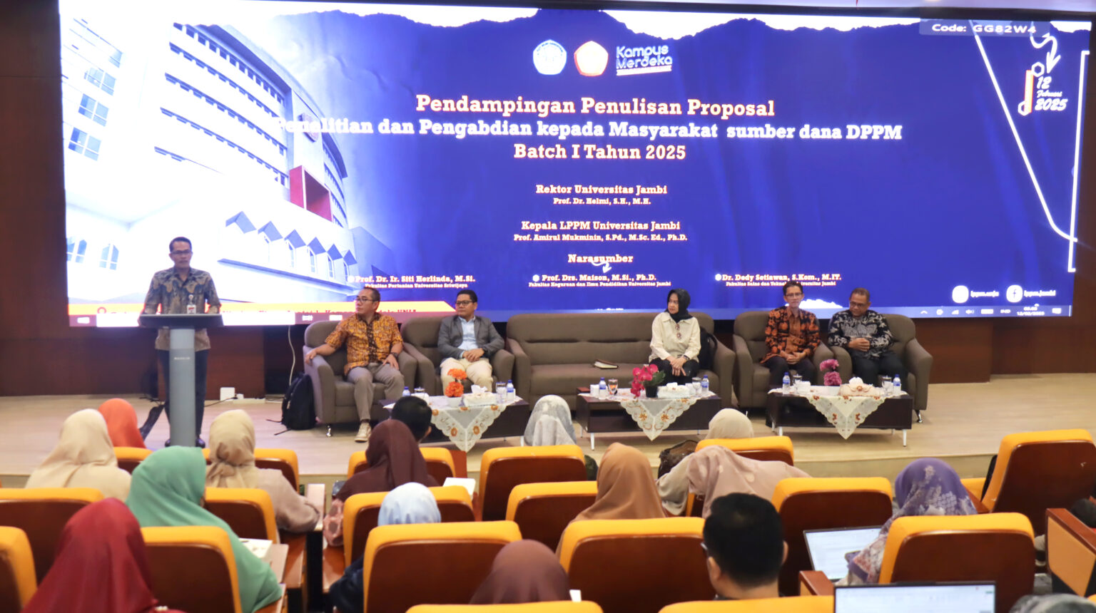 TANYAFAKTA.ID, JAMBI – Lembaga Penelitian dan Pengabdian kepada Masyarakat (LPPM) Universitas Jambi (UNJA) mengadakan kegiatan Pendampingan Penulisan Proposal Penelitian dan Pengabdian Masyarakat untuk sumber dana DPPM Batch 1 Tahun 2025. Kegiatan ini berlangsung pada Rabu, 12 Februari 2025, di Gedung UNIFAC, Ruang Auditorium Utama lantai 1, Kampus Mendalo, UNJA.