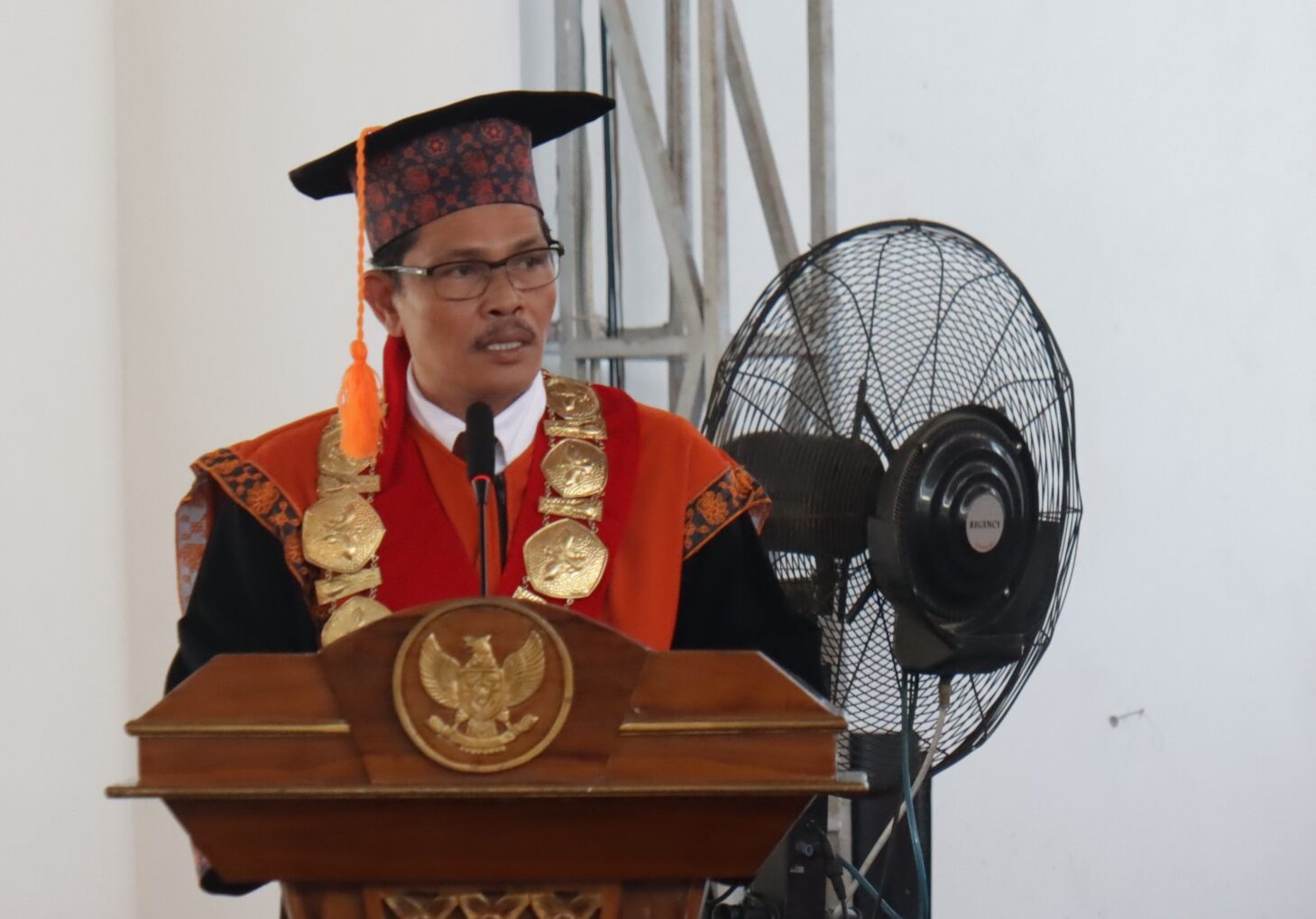 Prof. Dr. Drs. Zulgani, M.P., juga dari Fakultas Ekonomi dan Bisnis, menyampaikan orasi ilmiah berjudul “Transformasi Ekonomi Industrialisasi Perdesaan untuk Mengakselerasi Pembangunan Wilayah: Suatu Perspektif”.