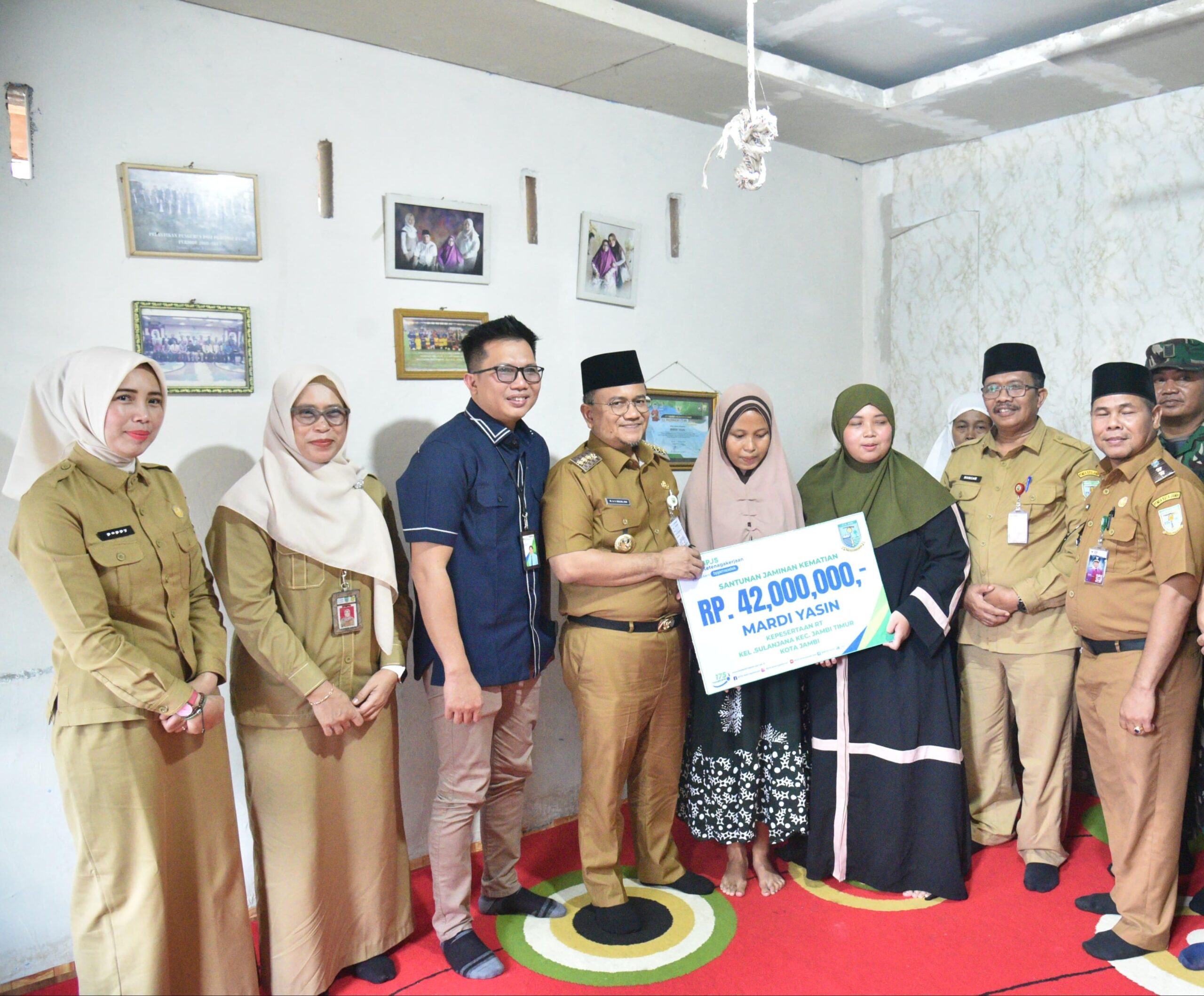 TANYAFAKTA.ID, KOTA JAMBI – Wali Kota Jambi, Dr. Maulana, didampingi oleh Kepala BPJS Ketenagakerjaan Cabang Jambi, Hendra Elvian, menyerahkan santunan Jaminan Kematian (JMK) kepada ahli waris almarhum Mardiyasin bin Ahmad, yang merupakan Ketua RT 13 Kelurahan Sulanjana, Kecamatan Jambi Timur, pada Selasa (11/3/2025).