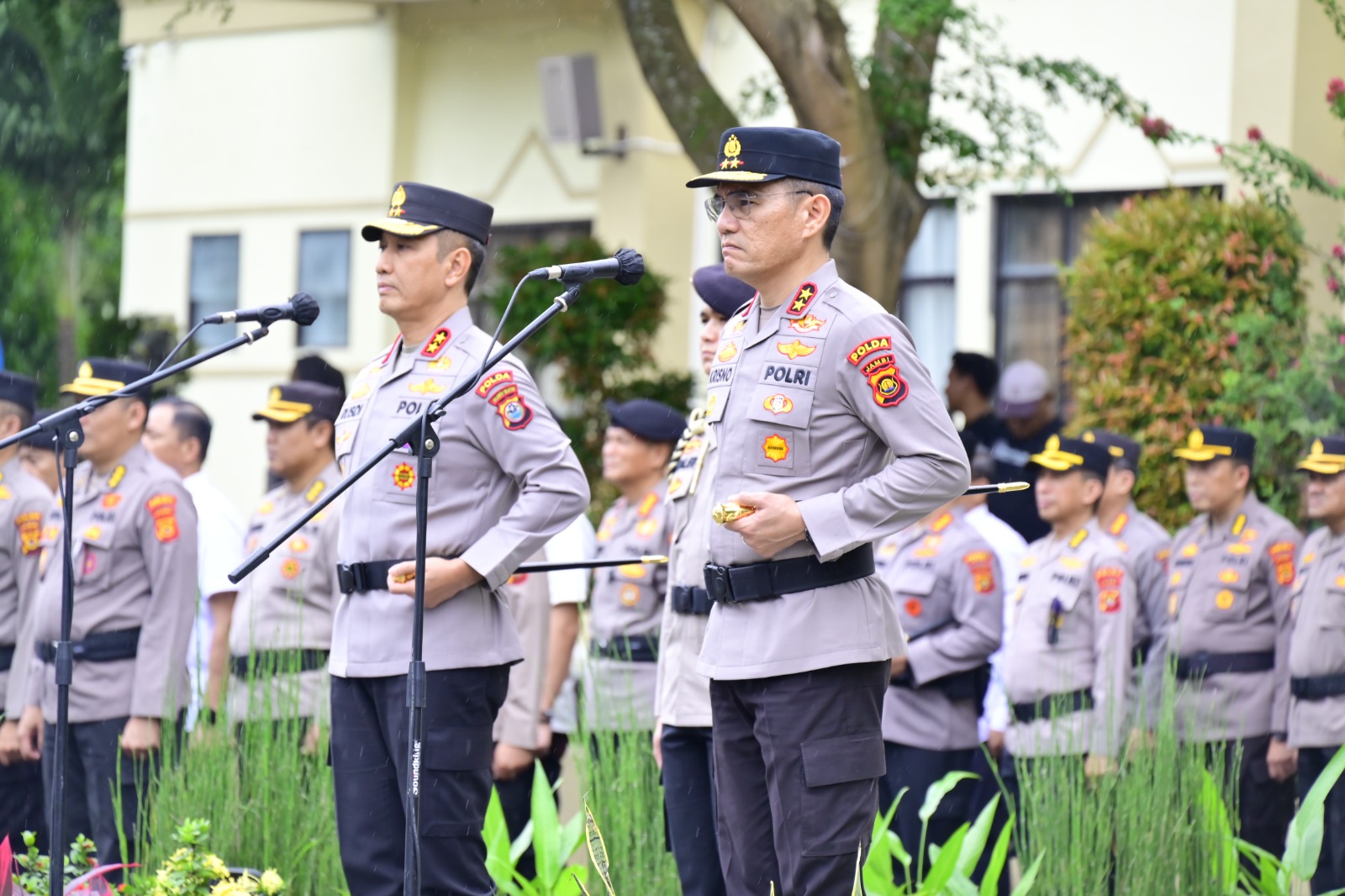 TANYAFAKTA.ID, JAMBI – Polda Jambi menggelar serangkaian acara tradisi penyambutan dan serah terima jabatan Kapolda Jambi yang baru, Irjen Pol Krisno Halomoan Siregar, S.I.K., M.H., yang menggantikan posisi Irjen Pol Drs. Rusdi Hartono, M.Si., pada Rabu (19/03/2025).