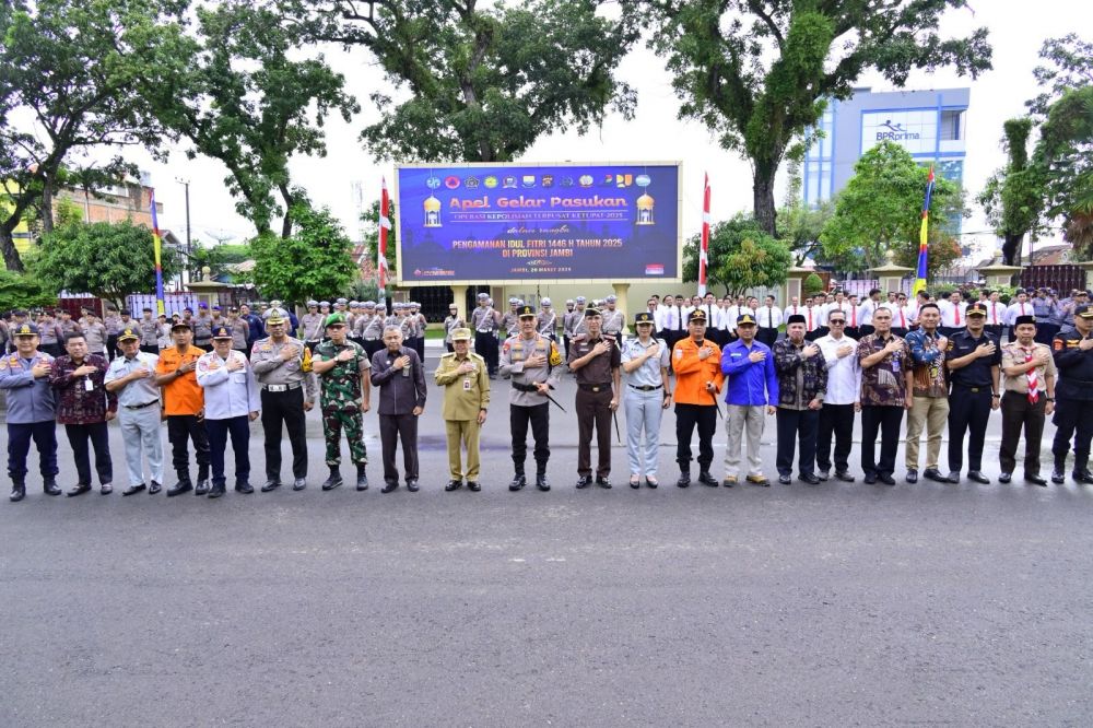Apel tersebut dipimpin langsung oleh Kapolda Jambi Irjen Pol Krisno Halomoan Siregar, S.I.K., M.H., dan dihadiri oleh Gubernur Jambi Dr. H. Alharis serta Wakapolda Jambi Brigjen Pol Edi Mardianto, S.I.K., M.Si.