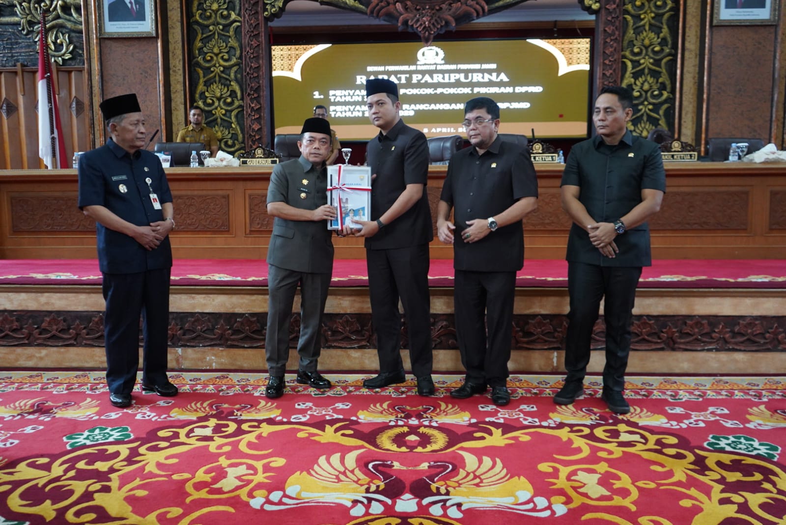 TANYAFAKTA.ID, JAMBI –  Gubernur Jambi Dr. H. Al Haris, S.Sos, MH menyampaikan Nota Pengantar Rancangan Awal Pembangunan Jangka Menengah Daerah Provinsi Jambi (RPJMD) tahun 2025-2029 dalam rapat Paripurna DPRD Provinsi Jambi, bertempat di Gedung DPRD Provinsi Jambi, Selasa (8/04/2025) pagi.