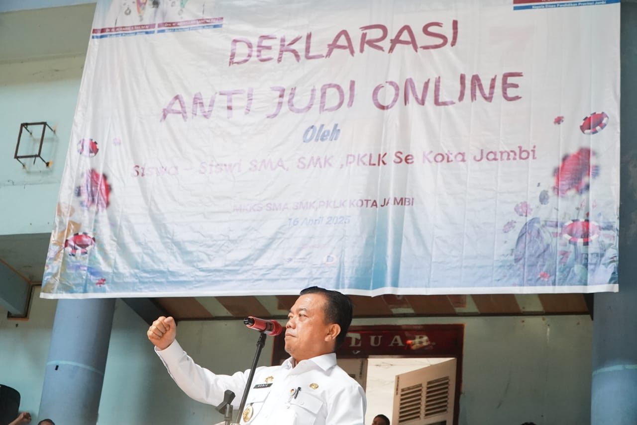 Ajakan tersebut disampaikannya saat Pembukaan Deklarasi dan Sosialisasi Pencegahan Judi Online dilingkungan Pelajar SLTA, SMK Sederajat dan SDLB Se- Provinsi Jambi, bertempat di Gedung Olah Raga (GOR) Kota Baru Jambi, Rabu (16/04/25) pagi.
