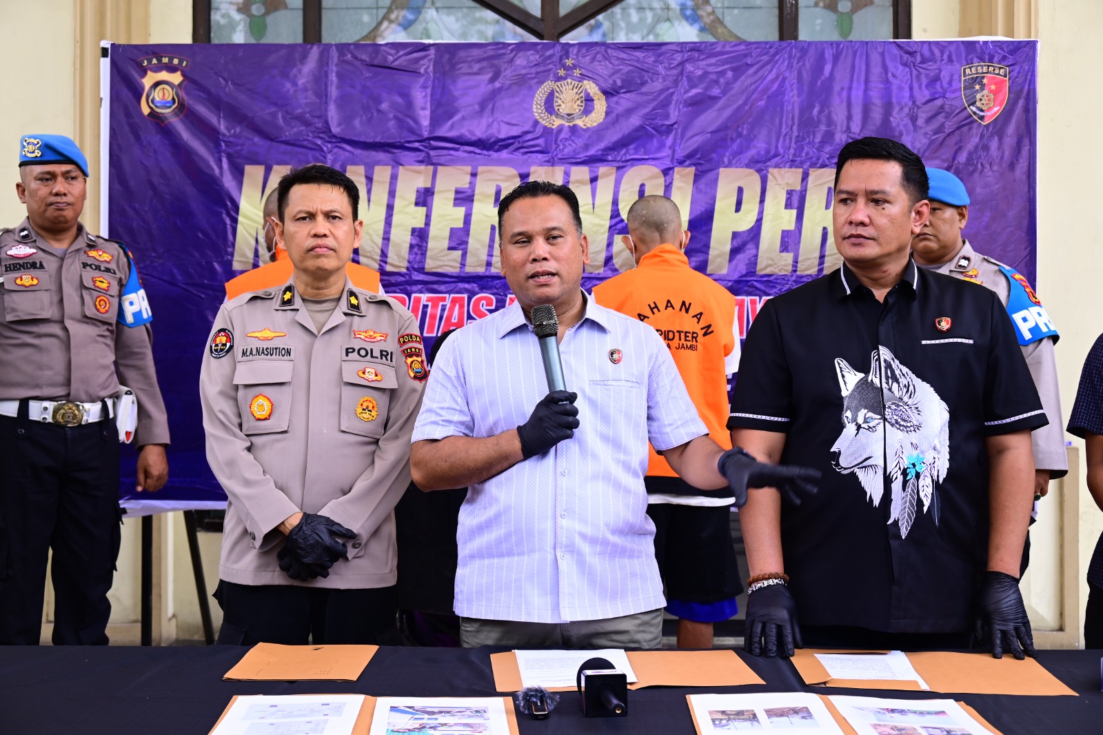 TANYAFAKTA.ID, JAMBI – Direktorat Reserse Kriminal Khusus (Ditreskrimsus) Polda Jambi menggelar konferensi pers pada Selasa (22/04/2025) di Gedung B Polda Jambi, untuk mengumumkan penangkapan tiga pelaku penambangan minyak ilegal (illegal drilling) di Desa Pompa Air, Kecamatan Bajubang, Kabupaten Batanghari.