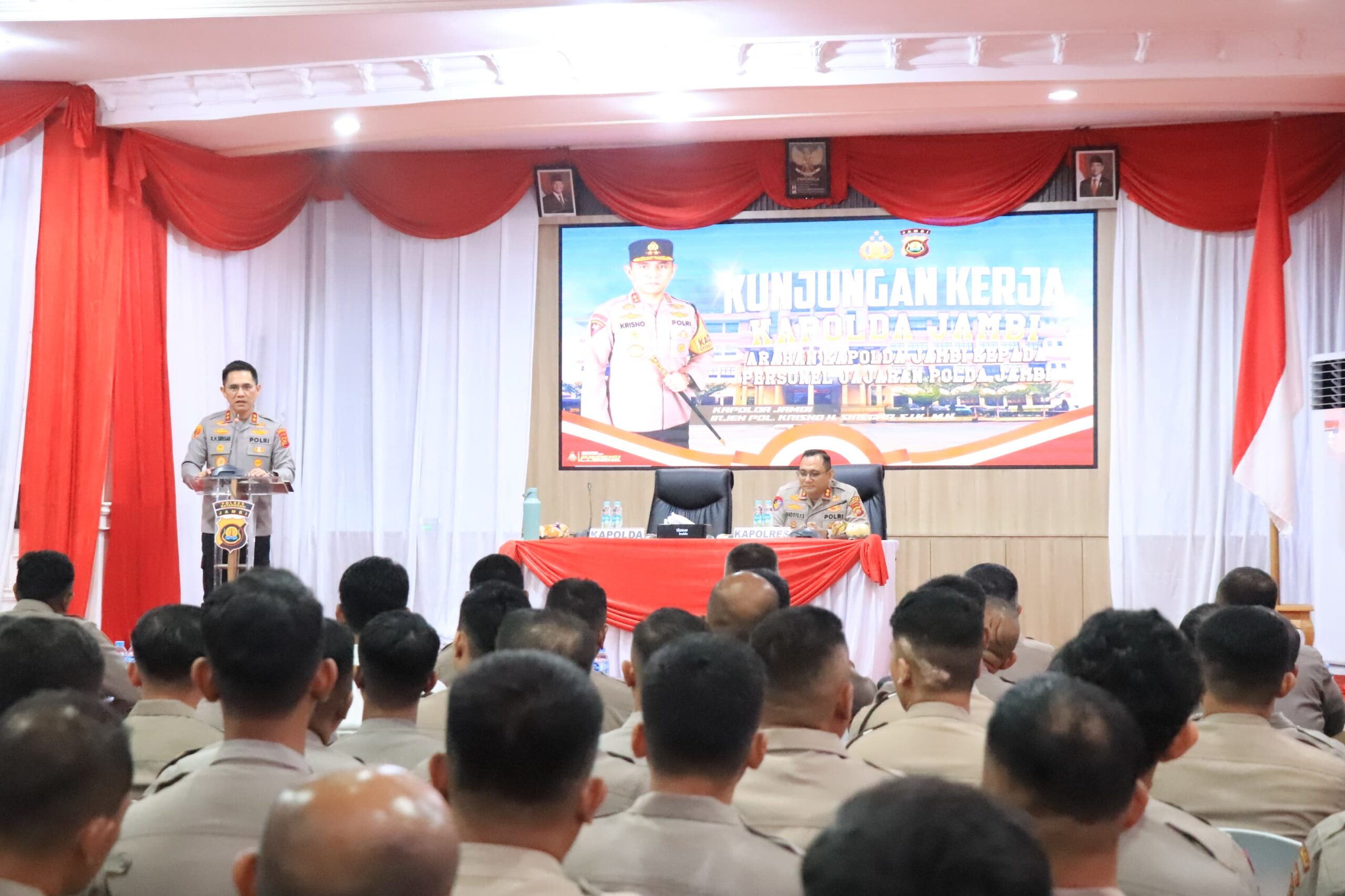 Dalam arahannya, Kapolda Jambi menekankan pentingnya peningkatan profesionalisme, penegakan hukum yang tegas, serta pembinaan internal guna menjaga integritas institusi Polri.