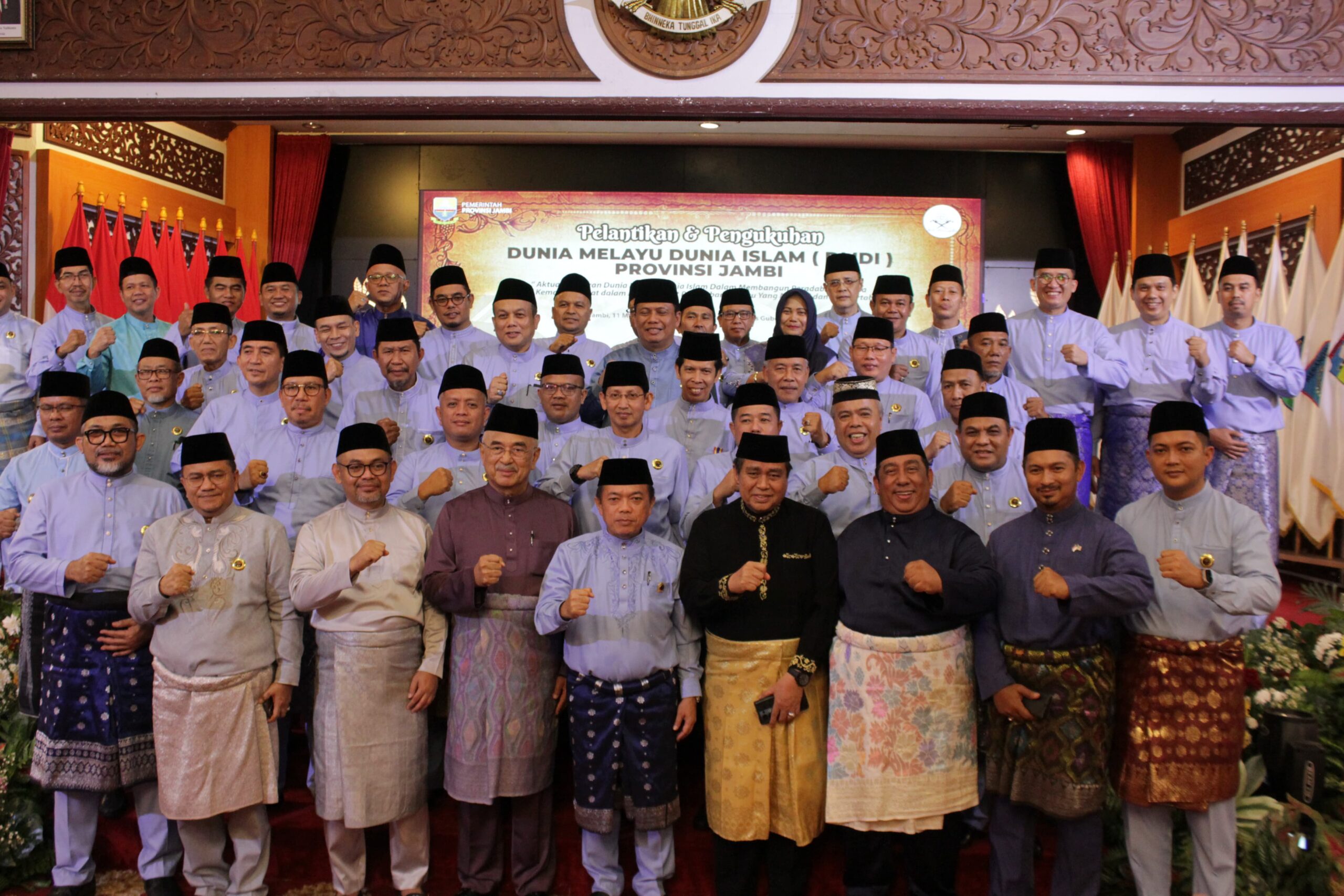 “Hari ini saya bersama Kemenag Kota Jambi, tokoh adat, dan tokoh agama hadir dalam pelantikan pengurus Dunia Melayu Dunia Islam Provinsi Jambi, yang dalam hal ini ketuanya adalah Gubernur Jambi Al Haris,” ujar Wali Kota Maulana.