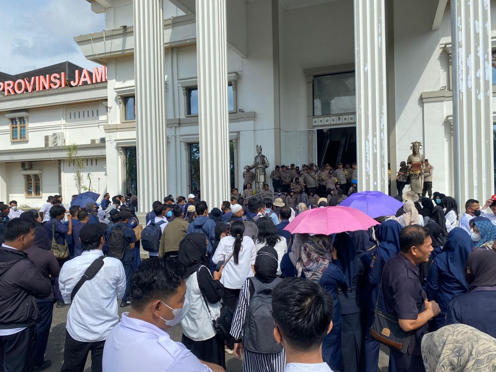 TANYAFAKTA.CO, JAMBI – Ratusan tenaga honorer dari berbagai kabupaten dan kota di Provinsi Jambi menggelar aksi unjuk rasa di depan Gedung DPRD Provinsi Jambi pada Selasa pagi, (20/5/2025).