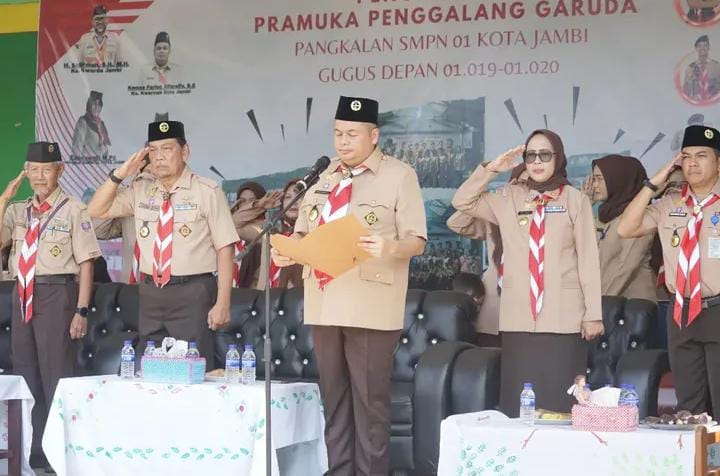 TANYAFAKTA.CO, KOTA JAMBI – Ketua Kwartir Cabang (Kwarcab) Gerakan Pramuka Kota Jambi, Kemas Faried Alfarelly, SE, mengukuhkan 17 Pramuka Penggalang Garuda dari Pangkalan SMPN 1 Kota Jambi dalam sebuah prosesi resmi yang digelar pada Selasa (27/5/2025) pagi.