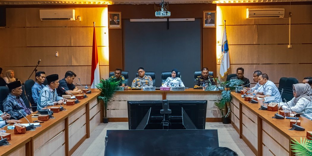 Rapat ini membahas seputaran kestabilan ketersediaan dan harga bahan pokok, pengawasan terhadap jual beli hewan kurban, serta persiapan pengamanan penyelenggaraan shalat Ied Adha dan malam takbiran.