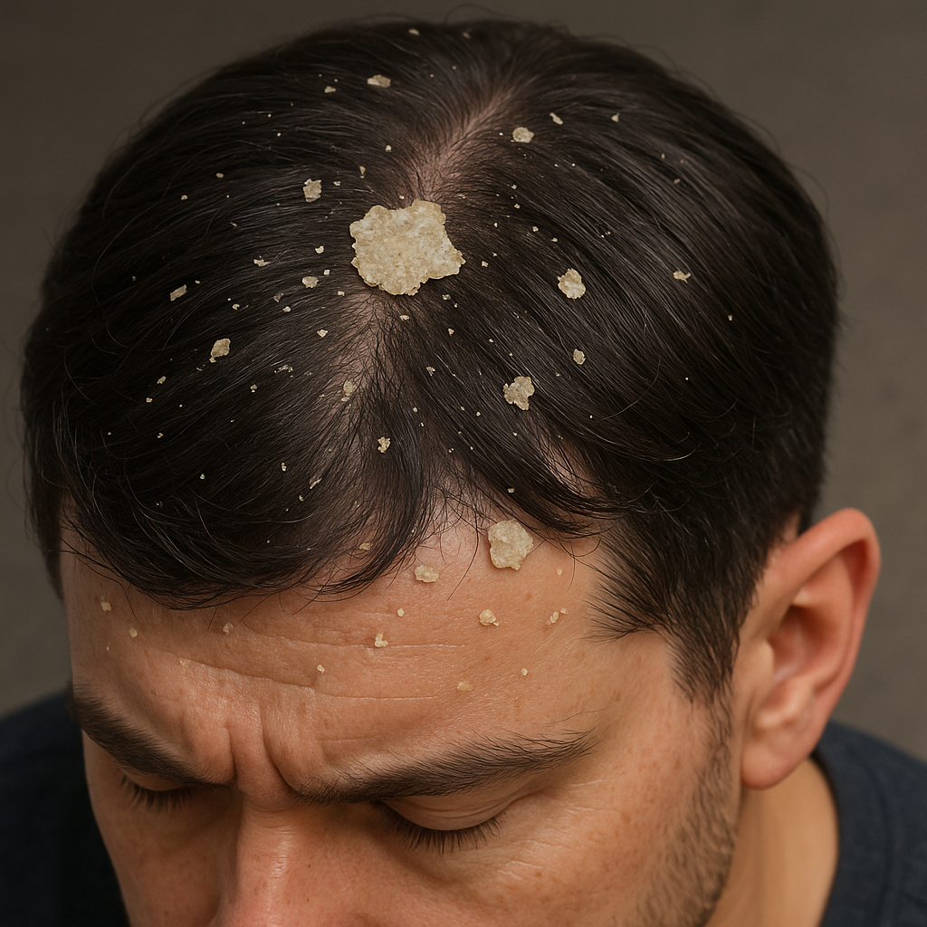 Ketombe biasanya berupa serpihan kulit kepala yang berwarna putih atau kekuningan. Pada kasus kronis, ketombe bisa berukuran besar, menempel erat di kulit kepala, dan sulit dihilangkan hanya dengan sampo biasa. Kondisi ini sering disertai rasa gatal hebat, kulit kepala kemerahan, hingga peradangan.