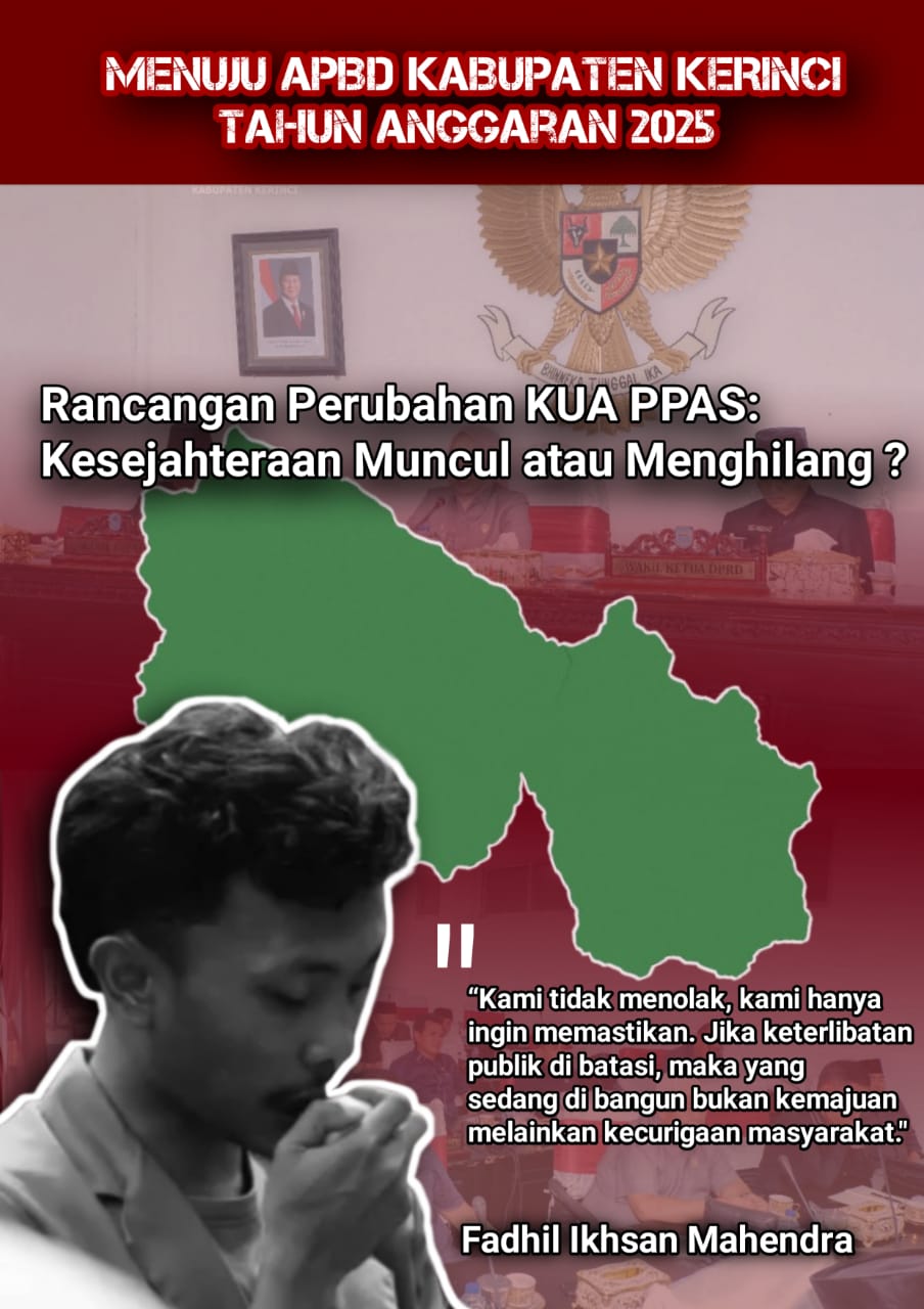TANYAFAKTA.CO, KERINCI – Perubahan Kebijakan Umum Anggaran dan Prioritas Plafon Anggaran Sementara (KUA–PPAS) bukan sekadar penyesuaian angka dalam dokumen anggaran. Melainkan cerminan dari arah dan orientasi pembangunan daerah.