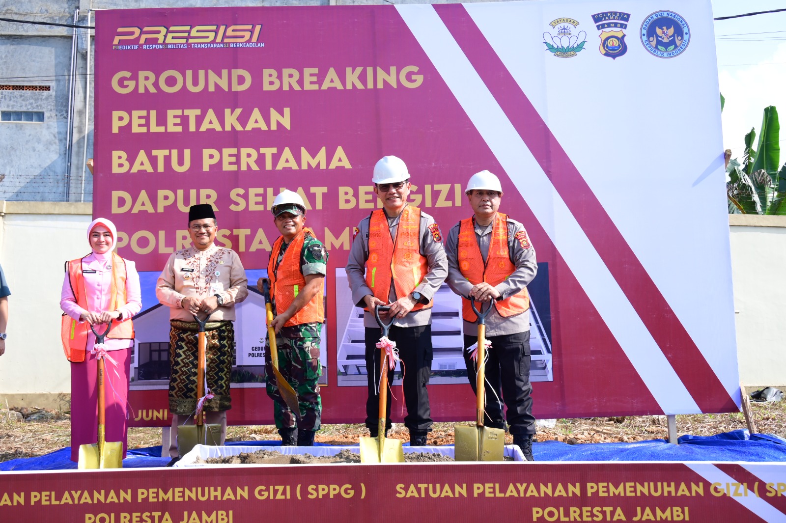 TANYAFAKTA.CO, JAMBI – Kepala Kepolisian Daerah Jambi, Irjen Pol. Krisno H. Siregar, secara resmi memimpin kegiatan ground breaking pembangunan Satuan Pelayanan Pemenuhan Gizi (SPPG) di kawasan dapur SPPG Polresta Jambi, Kamis (26/6/2025)