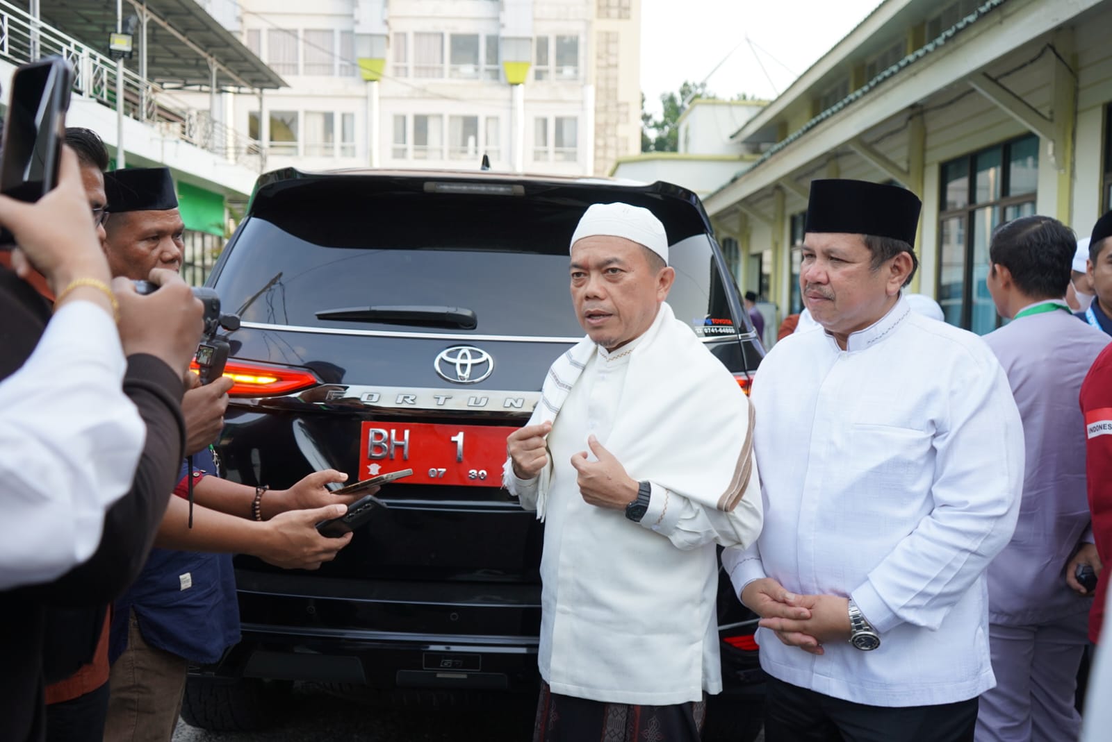 “Setelah bapak dan ibu menempuh perjalanan panjang, mulai dari keberangkatan hingga menunaikan haji dan kini kembali ke tanah air, alhamdulillah semuanya diberikan kesehatan oleh Allah SWT. Ini semua karena semangat dan iman bapak ibu, tentu semuanya telah melaksanakan rukun haji dan kembali ke tanah air dan insya Allah akan kembali ke kampung halaman masing-masing,” ungkap Gubernur Al Haris.