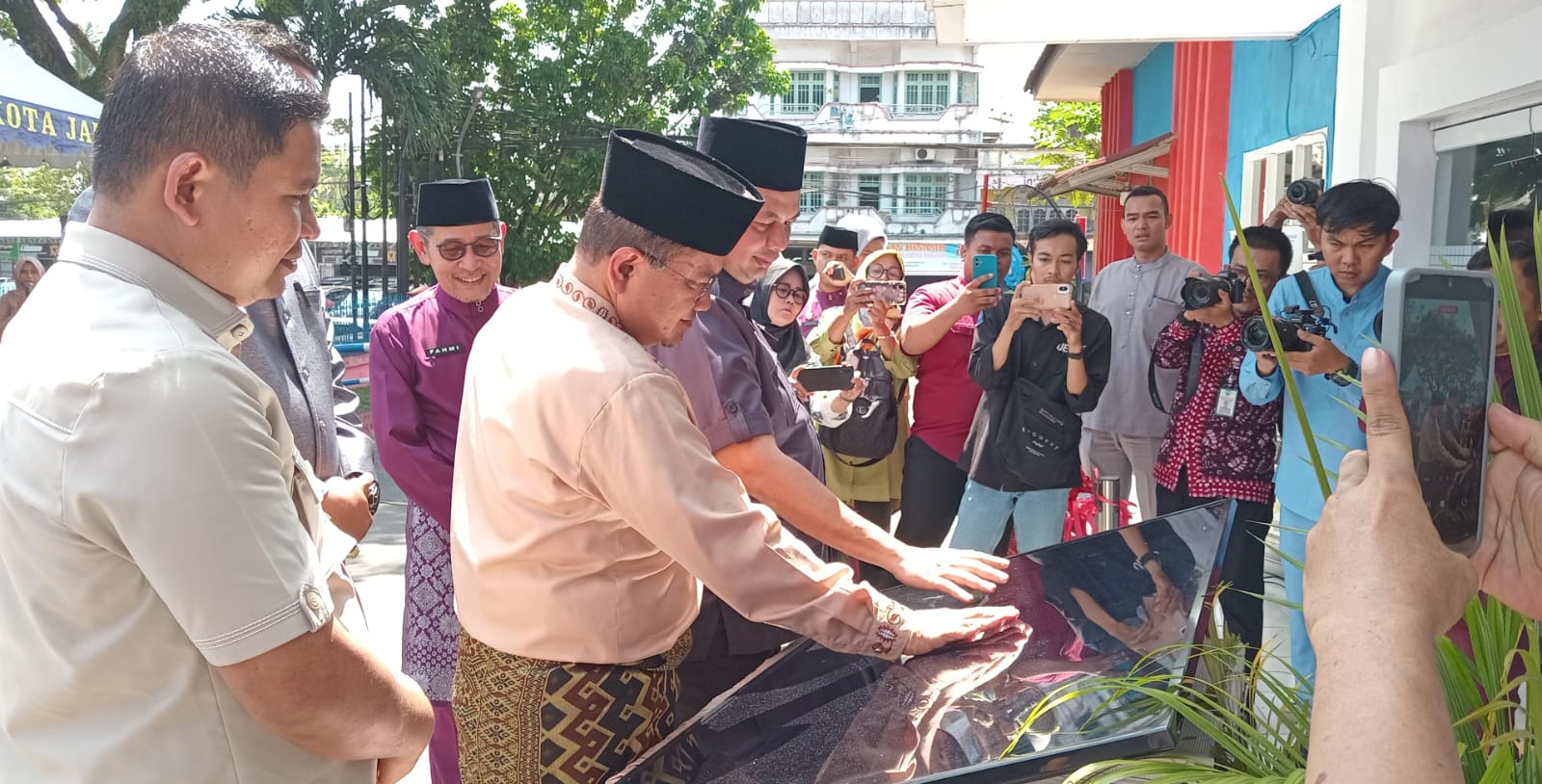 Acara peresmian ditandai dengan penekanan layar dan pemotongan pita oleh Wali Kota Jambi, didampingi Wakil Wali Kota Jambi, Diza Hazra Aljosha, serta Ketua DPRD Kota Jambi, Kemas Al-Farelly. (Aas)