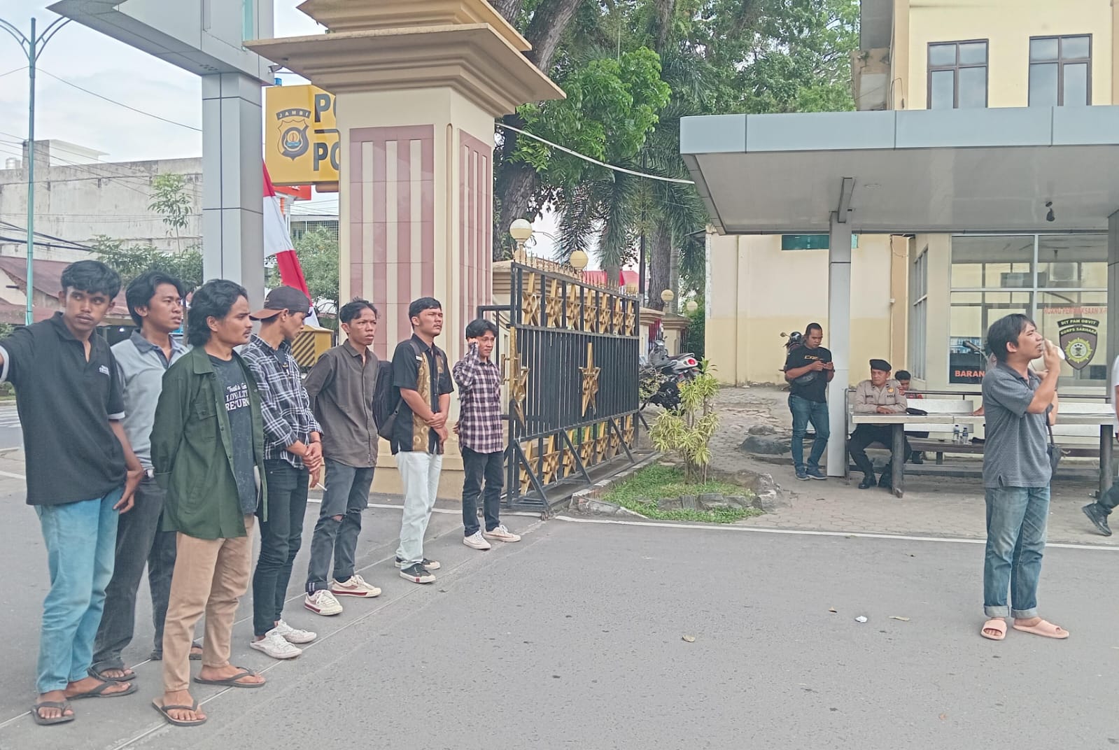 TANYAFAKTA.CO, JAMBI – Sejumlah aktivis yang tergabung dalam Lentera Perjuangan Mahasiswa Indonesia (LPMI) menggelar aksi unjuk rasa di depan Mapolda Jambi pada (9/7/2025).