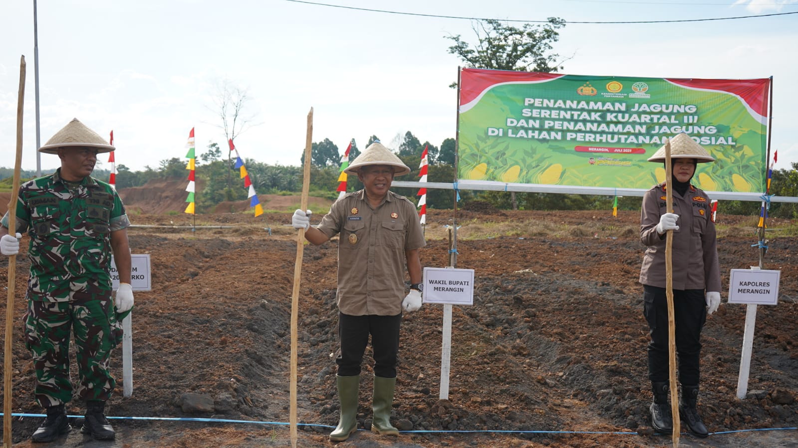 TANYAFAKTA.CO, BANGKO – Wakil Bupati Merangin H. A. Khafidh bersama Wakapolres Merangin Kompol Devita Efrina, Kasdim 0420/Sarko Mayor Inf Usman, dan Kasi Intel Kejari Merangin Ari Pratama mewakili Kajari Bintang SH turut serta dalam kegiatan penanaman jagung di lahan milik PT Kurnia Merangin Berjaya, Rabu (9/7/2025).