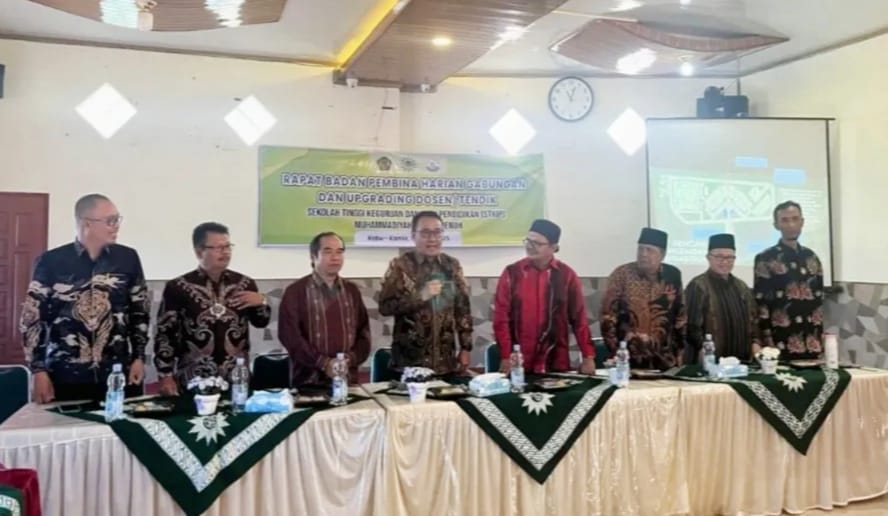 TANYAFAKTA.CO, SUNGAI PENUH – Wali Kota Sungai Penuh, Alfin, S.H., menghadiri sekaligus memberikan dukungan dalam kegiatan Rapat Badan Pembina Harian Gabungan dan Upgrading Dosen serta Tenaga Kependidikan Sekolah Tinggi Keguruan dan Ilmu Pendidikan (STKIP) Muhammadiyah Kota Sungai Penuh. Acara tersebut digelar di Aula Nyai Walidah Panti Asuhan Putri Muhammadiyah, Kamis (10/7/2025).