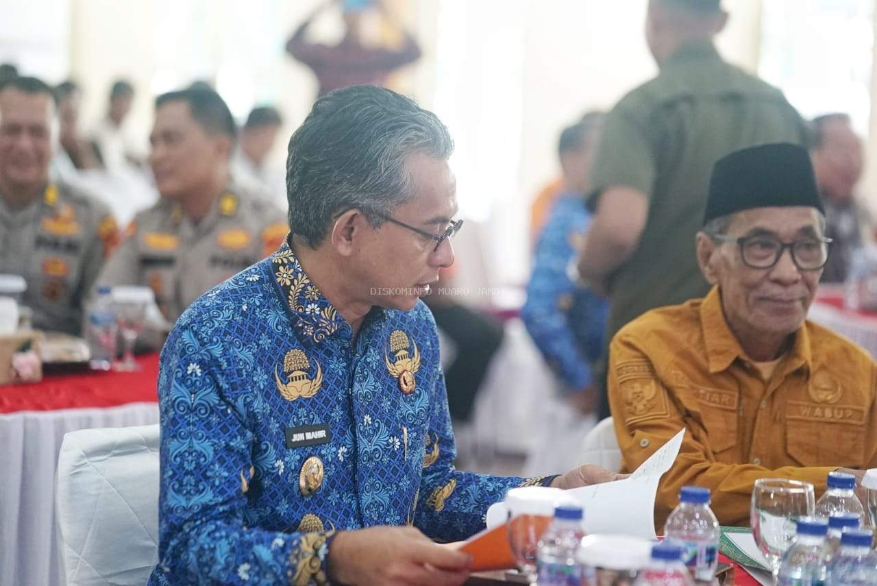 Dalam sambutannya, Junaidi H. Mahir memaparkan kondisi geografis Kabupaten Muaro Jambi yang memiliki luas wilayah 5.264 km², terdiri dari 11 kecamatan, 150 desa, dan 5 kelurahan. Ia menekankan bahwa sekitar 40 persen wilayah Muaro Jambi merupakan lahan gambut yang rentan terhadap kebakaran.