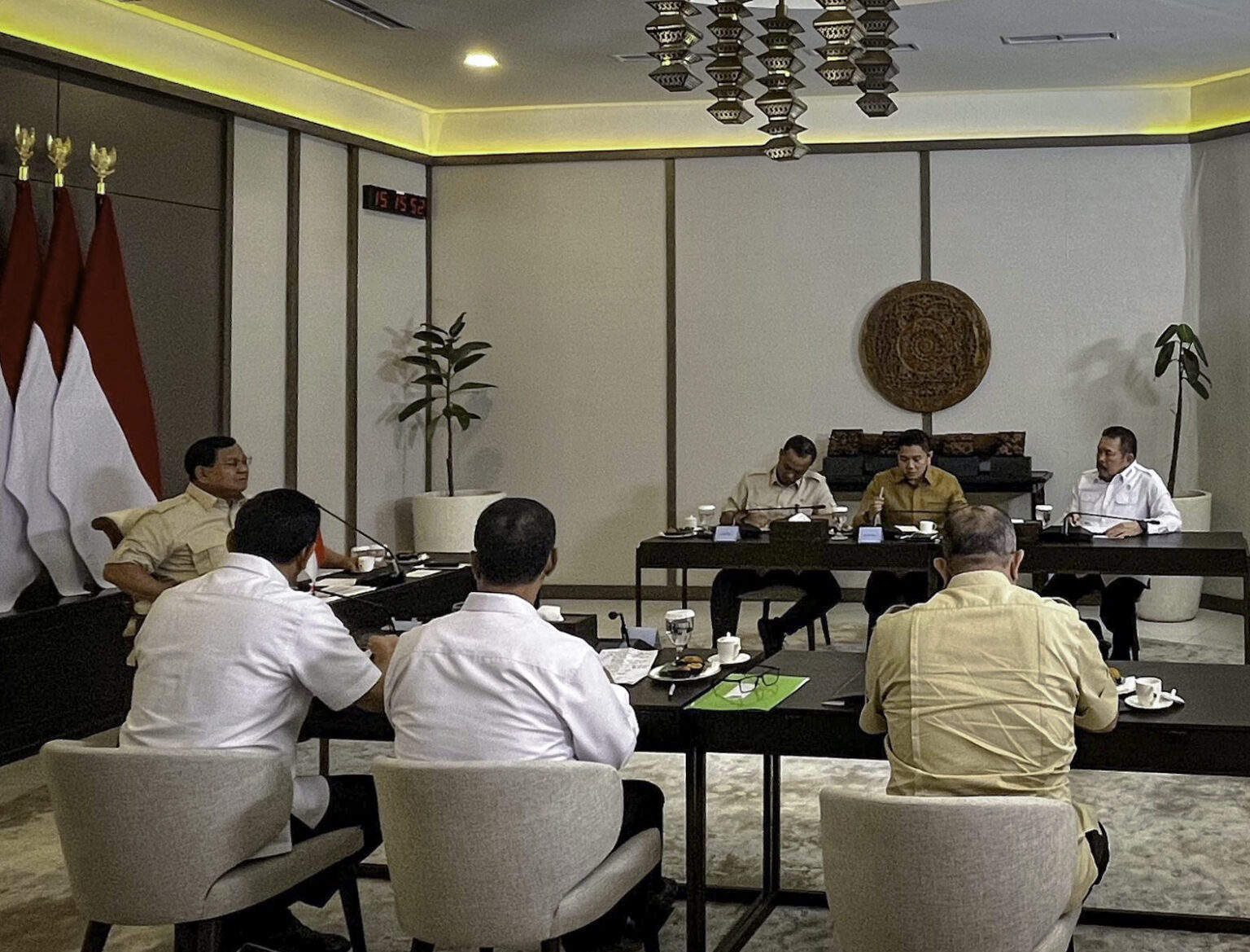 “Di hari Minggu siang ini, Presiden Prabowo Subianto menggelar rapat terbatas bersama sejumlah Menteri Kabinet Merah Putih, di Pangkalan TNI AU Halim Perdanakusuma, Jakarta,” ujar Sekretaris Kabinet, Teddy Indra Wijaya, dalam keterangannya.