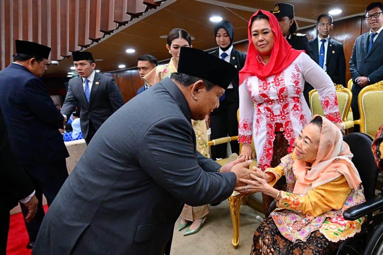 Tampak di antaranya, Presiden Prabowo menyalami Ketua MPR RI Ahmad Muzani, Ketua DPR RI Puan Maharani, Ketua DPD RI Sultan Bachtiar Najamudin, serta para anggota dewan yang hadir. Namun, momen yang paling mencuri perhatian terjadi ketika Presiden Prabowo menghampiri barisan Presiden dan Wakil Presiden RI terdahulu.