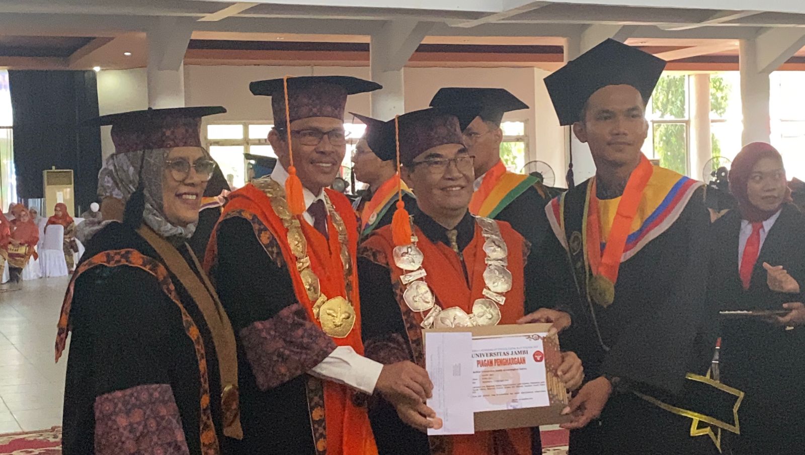 TANYAFAKTA.CO, MUARO JAMBI – Universitas Jambi (UNJA) memberikan penghargaan khusus bagi lulusan terbaik dalam Wisuda Ke-118 Semester Ganjil Tahun Akademik 2025/2026, yang digelar di Balairung Pinang Masak, Kampus Mendalo, Selasa (26/8/2025).