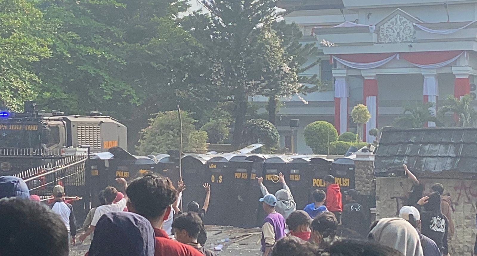 Kericuhan pecah setelah massa tidak disambut satupun anggota DPRD untuk menerima aspirasi mereka. Akibatnya, beberapa bagian gedung dilempari oleh massa hingga terbakarnya salah satu mobil berplat merah.