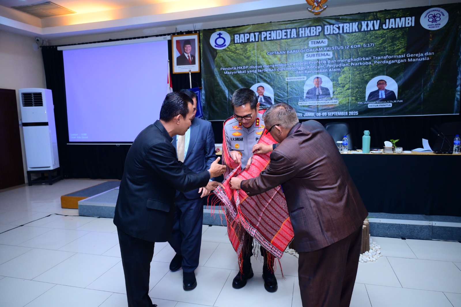 Kegiatan tersebut turut dihadiri Dirbinmas Polda Jambi, Kombes Pol. Henky Poerwanto, Kabid Humas Polda Jambi, Kombes Pol. Mulia Prianto, Ketua Rapat Pendeta HKBP, Pdt. Maulinus U. W. Siregar, M.Th., Praeses HKBP Distrik XXV Jambi, Pdt. Kamson RA. Pasaribu, M.Th., serta para pendeta HKBP se-Provinsi Jambi.