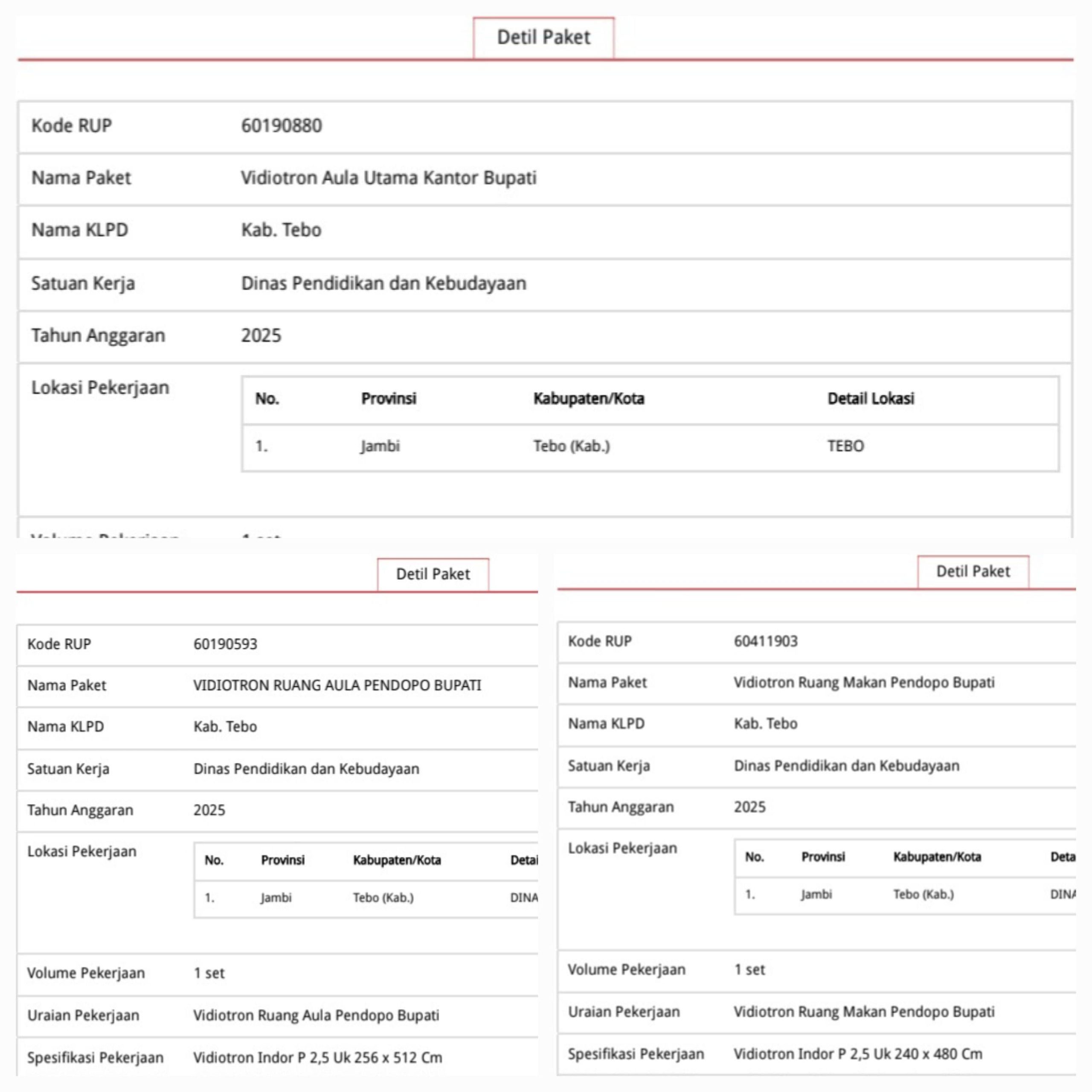 Faktanya, Saat ini ada penganggaran Pengadaan di Dinas Pendidikan dan kebudayaan Kabupaten Tebo adanya Penganggaran Pengadaan Videotron di ruang makan Rumah dinas Bupati Tebo, Videotron utama kantor Bupati dan vidiotron ruang aula Pendopo Bupati yang dimana angaran ini hampir mencapai 1 miliar.