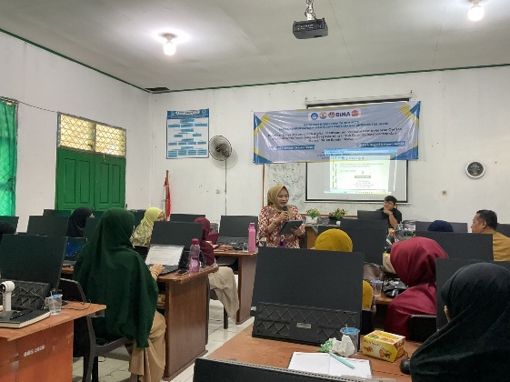 Sahara dalam pemaparan materinya menyampaikan bahwa pelatihan ini merupakan bentuk hilirisasi dari penelitian yang telah dilakukan sebelumnya di bidang pembelajaran digital berbasis AI dan media edukatif.