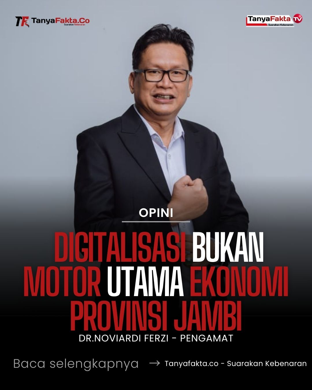 TANYAFAKTA.CO – Kaim bahwa digitalisasi otomatis menjadi motor ekonomi Jambi perlu dikritisi secara ilmiah dan logis. Digitalisasi memang memberi peluang efisiensi transaksi dan perluasan akses pasar, namun tidak bisa dianggap sebagai satu-satunya penggerak pertumbuhan ekonomi.