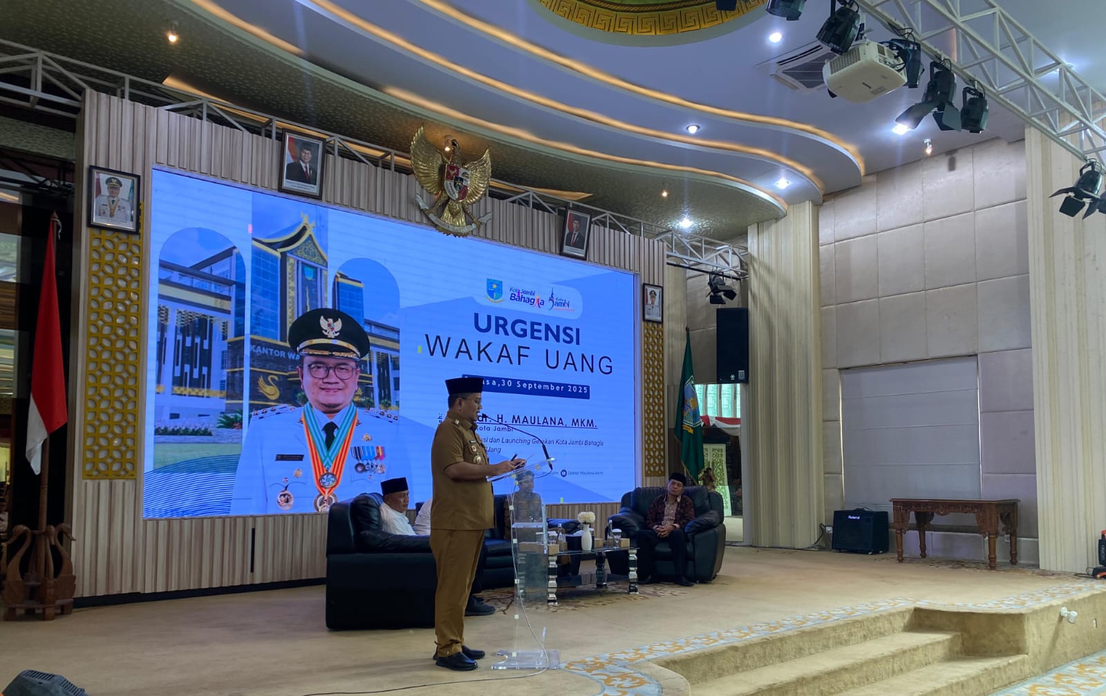 TANYAFAKTA.CO, KOTA JAMBI – Wali Kota Jambi, Dr. dr. H. Maulana, MKM, secara resmi membuka kegiatan Sosialisasi Gerakan Kota Jambi Bahagia Berwakaf Uang. Acara yang digelar Badan Wakaf Indonesia (BWI) Kota Jambi bekerja sama dengan Bagian Kesejahteraan Rakyat (Kesra) Setda Kota Jambi ini berlangsung di Aula Griya Mayang, Rumah Dinas Wali Kota Jambi, Selasa (30/9/2025).