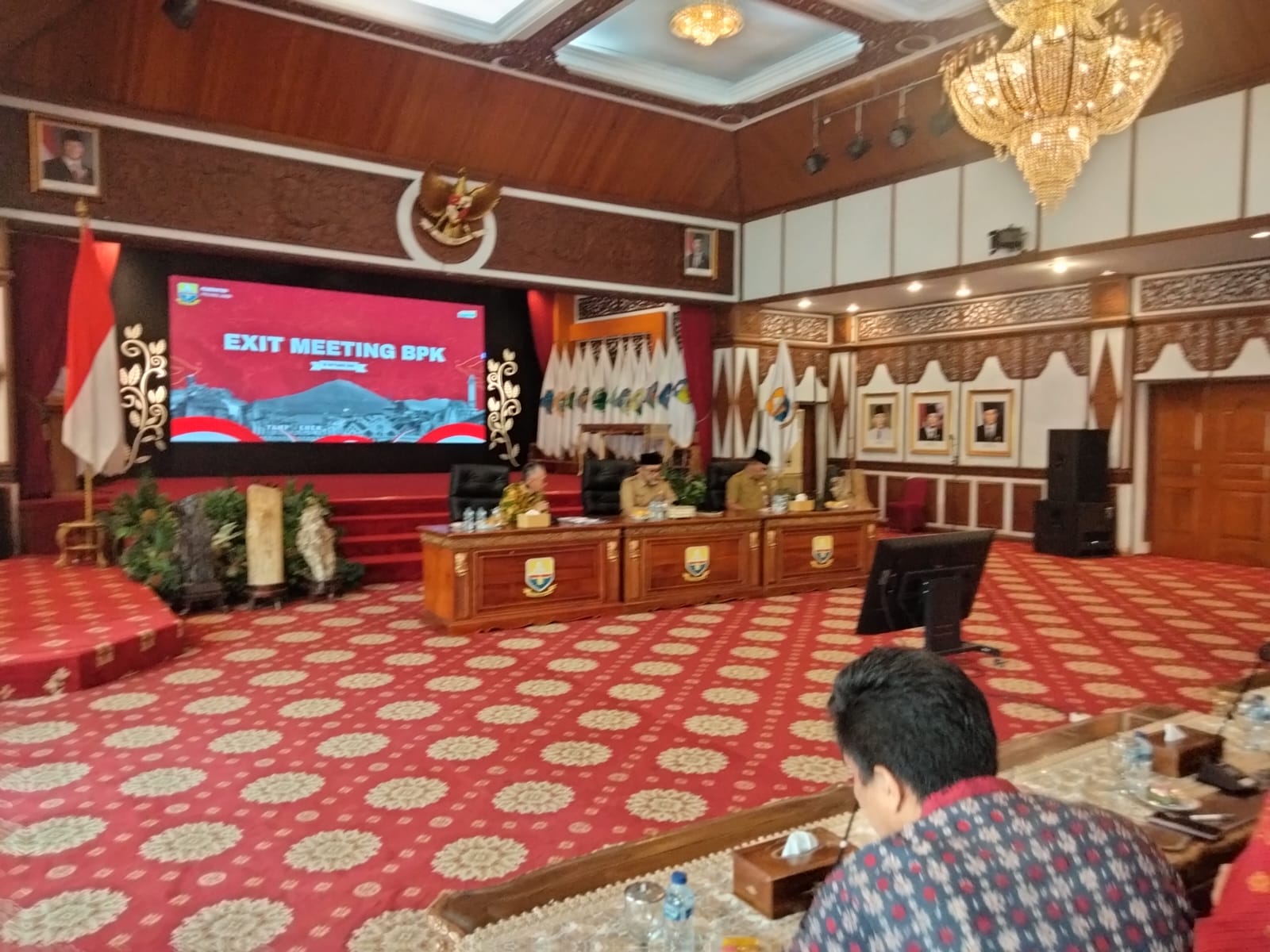 TANYAFAKTA.CO, JAMBI – Sekretaris Daerah (Sekda) Provinsi Jambi Dr. H. Sudirman, SH, MH memimpin Exit Meeting dan Entry Meeting Badan Pemeriksa Keuangan Republik Indonesia (BPK RI) pada Pemerintah Provinsi Jambi, bertempat di Auditorium Rumah Dinas Gubernur Jambi, Selasa (30/09/2025)