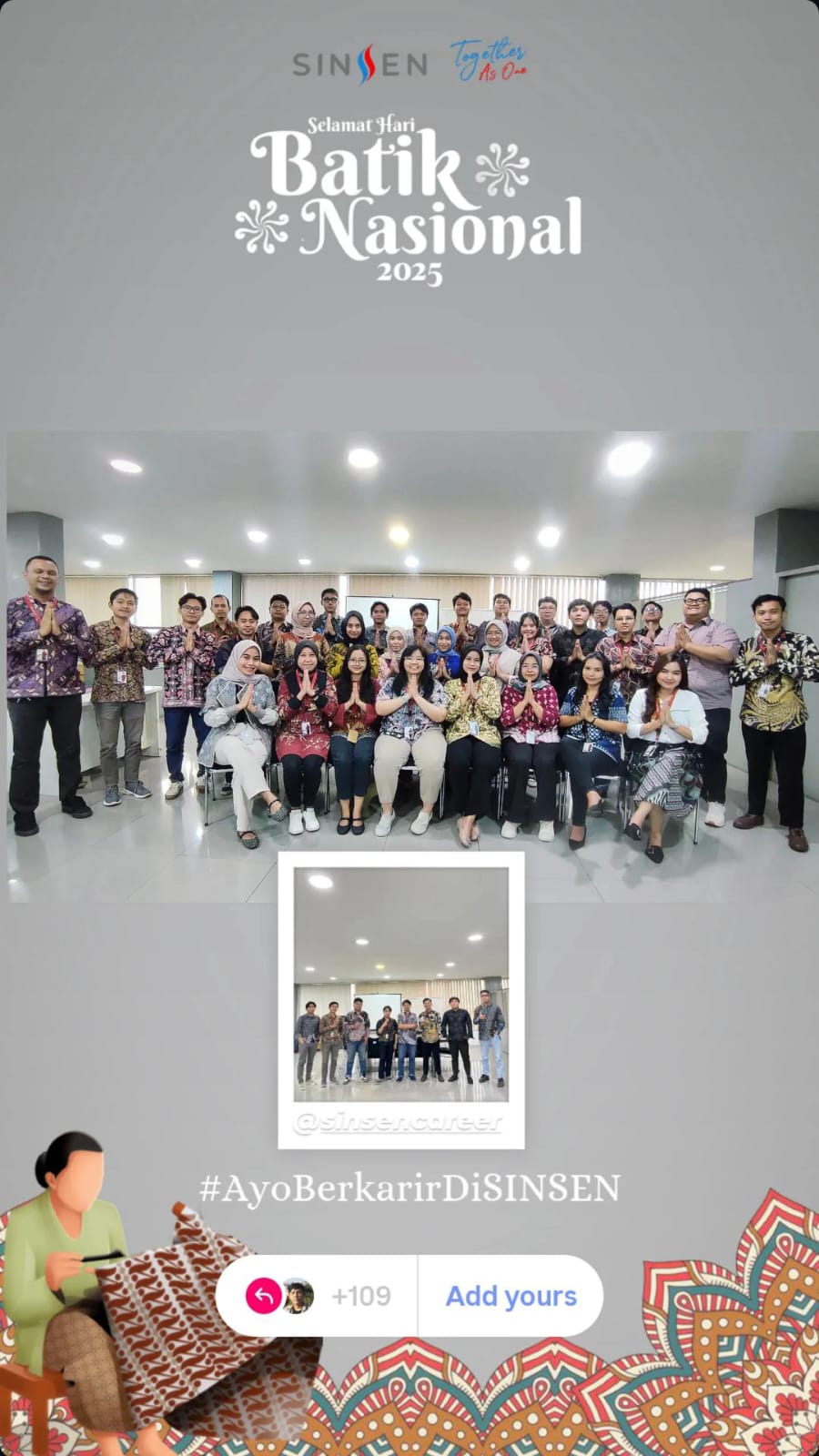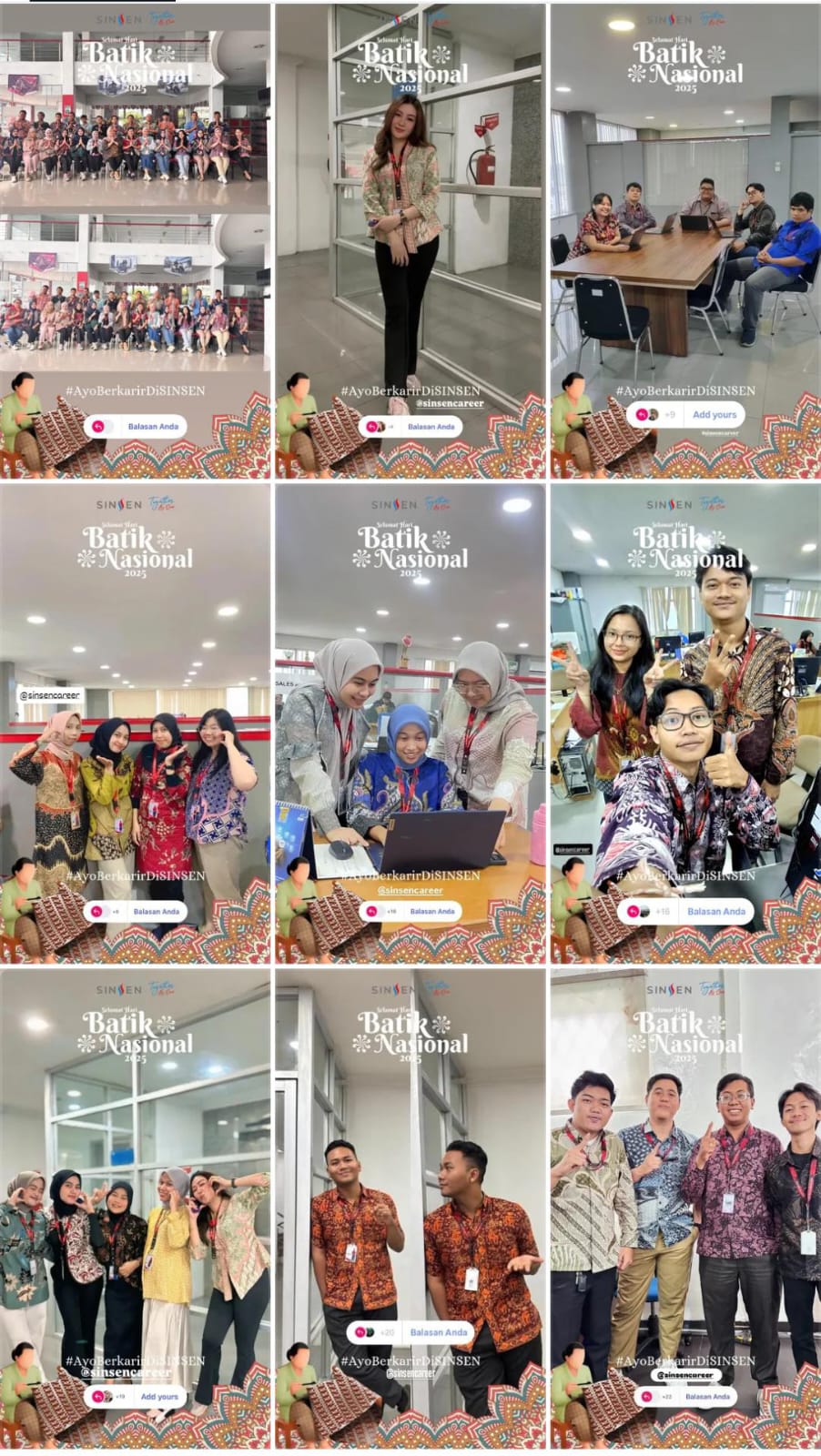 Seluruh karyawan diajak untuk mengunggah foto mengenakan batik di Instagram Story masing-masing dengan template khusus yang telah disiapkan oleh HRD Sinsen. Aktivitas ini menjadi ajang ekspresi diri sekaligus memperluas semangat cinta budaya di dunia digital.