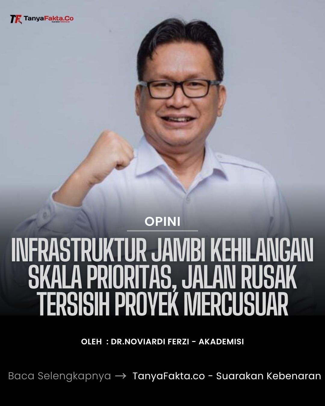 TANYAFAKTA.CO, JAMBI – Pengamat kebijakan publik Dr. Noviardi Ferzi menilai kebijakan Pemerintah Provinsi Jambi yang hanya mengalokasikan anggaran perbaikan jalan sekitar 17 kilometer pada tahun 2026 merupakan bukti hilangnya skala prioritas pembangunan daerah.